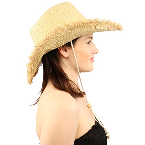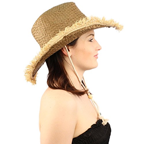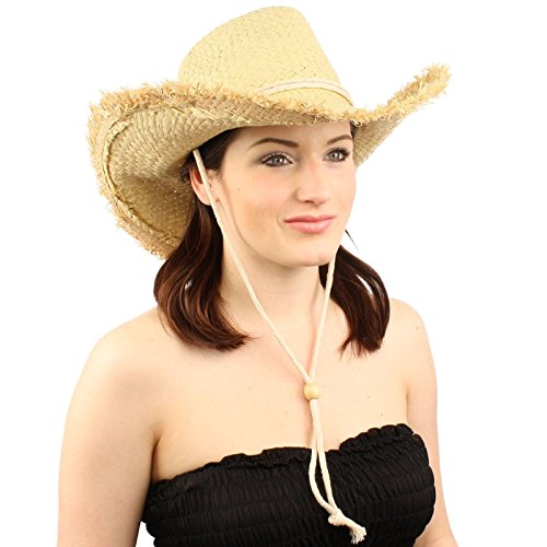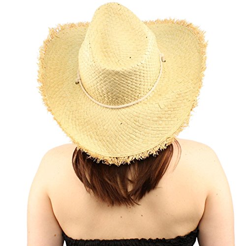 -. Title : Frayed Wire Shapeable Edges Chin Strap Straw Shapeable Cowboy Hat