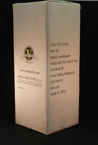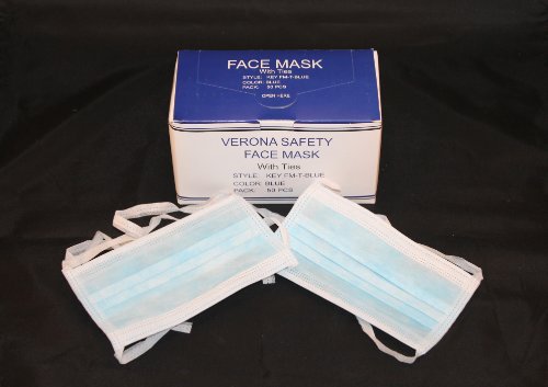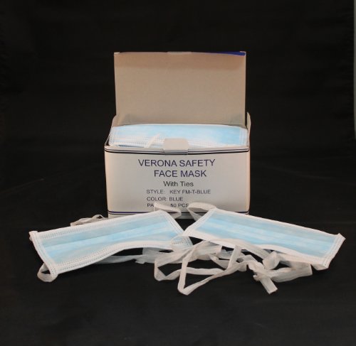 -. Title : Verona Safety Blue Tie-On Face Mask (KEY FM-T-BLUE) Case of 500