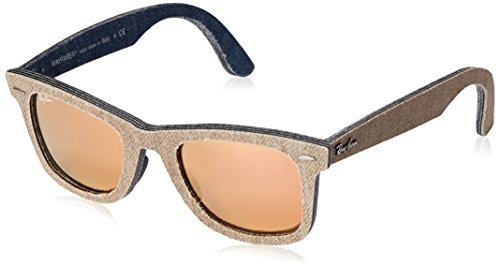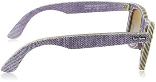 These Ray-Ban sunglasses feature denim-trimmed frames for a modern look. Logo lettering at right lens and at temples. 100% UV protection. Case and cleaning cloth included.