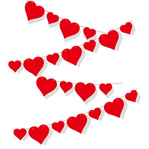 Beurio Red Hearts Party Banner Garland for Wedding Decorations, 2 Pack