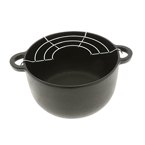 Iwachu Cast Iron Fondue and Deep-Fry Pot with Scalloped Ring and Wire Rack, Black