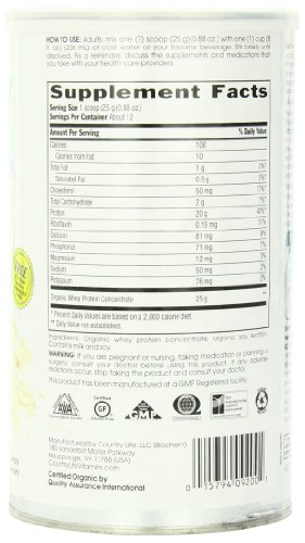 -. Binding : Health and Beauty -. Brand : Country Life -. Label : Country Life New Zealand -. Manufacturer : Country Life New Zealand -. ProductGroup : Health and Beauty -. ProductTypeName : HEALTH_PERSONAL_CARE -. Publisher : Country Life New Zealand -. Studio : Country Life New Zealand -. Title : Country Life 100% Organic Whey Protein Nutrition Beverage