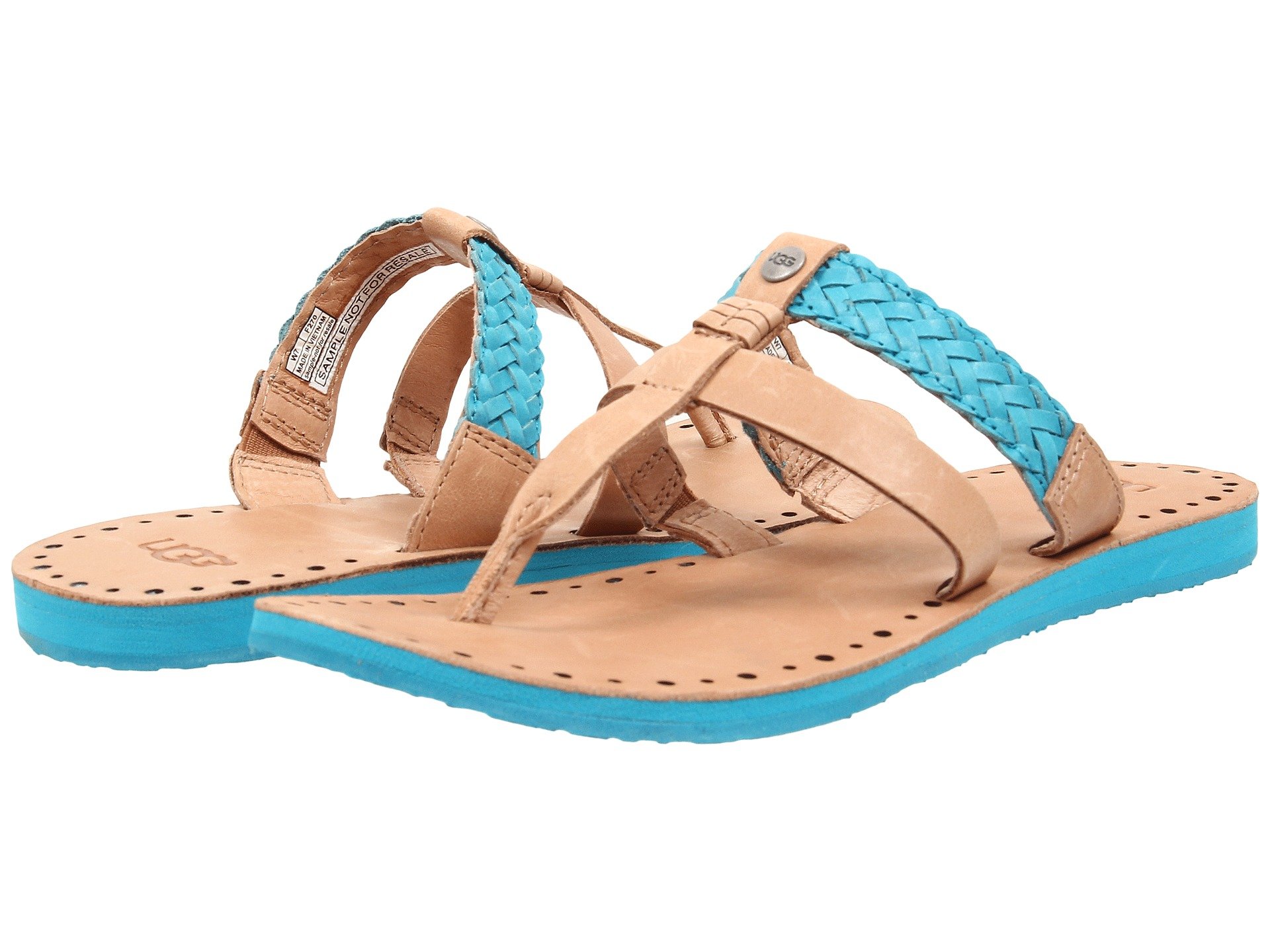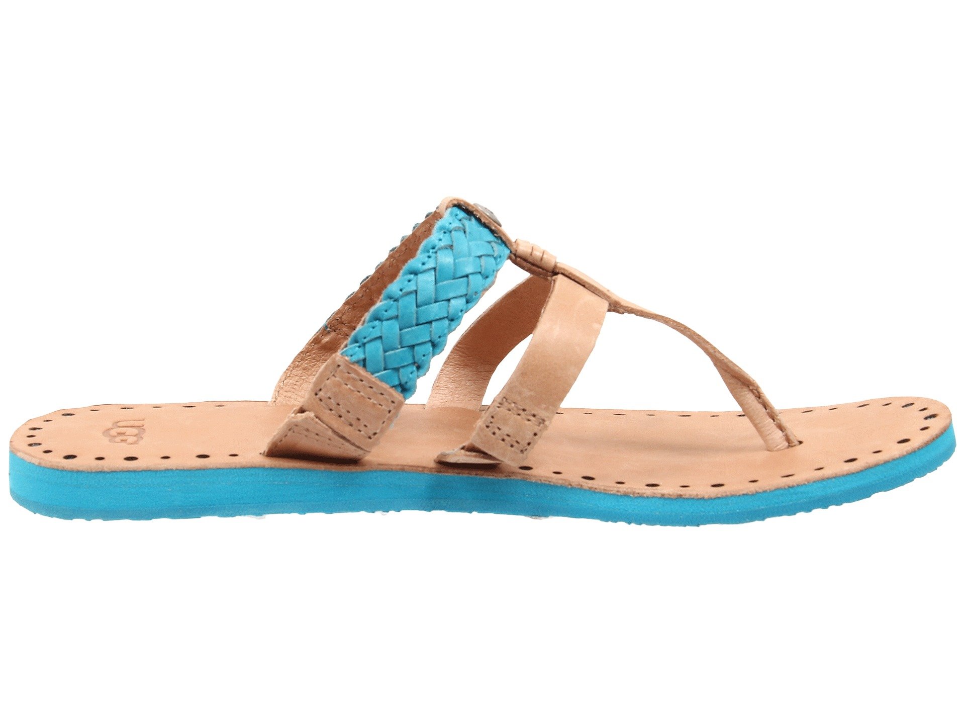 | Product Information SKU: #8663734This item is subject to quantity limitations.Say hello to this summers hottest catch by UGG?!Leather or mirror patent upper with braided strap details for added appeal.Easy slip-on style.Lightly cushioned footbed.Molded rubber outsole.Imported.Product measurements were taken using size 7, width B - Medium. Please note that measurements may vary by size.Weight of footwear is based on a single item, not a pair.Measurements: Heel Height: 1?2 in Weight: 4 oz |