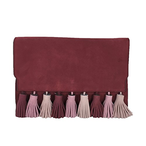 -. Brand : Rebecca Minkoff -. Color : Port -. Department : womens -. EAN : 0846632817186 -. Feature : Envelope flap convertible clutch made of a luxe mix of soft suede & leather. / Front flap trimmed in multi colored tassels. Back slip pocket. Back logo plaque. Silvertone hardware. / A removable cross-body strap for extra versatility. / Magnetic closrue. Inside, fabric lining; Six interior card slip pockets / 11.5 W x 8"H x 1"D strap; 22" drop. -. Model : HF16ESDC13 -. PackageQuantity : 1 -. ProductGroup : Shoes -. ProductTypeName : HANDBAG -. Size : One Size -. Title : Rebecca Minkoff Sofia Tassel Clutch Crossbody, Port -. UPC : 846632817186