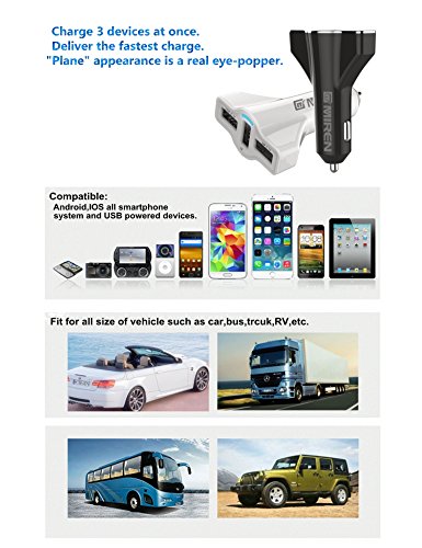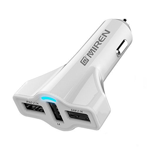 MIREN 3-Port Rapid USB Car Charger 5.2A 26W,Compatible with iPhone 6Plus/6/5s/5/4,iPad,Ipods,Most Android Smartphones,Tablets and More(White)