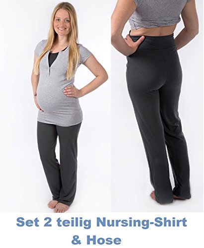 -. Binding : Textilien -. Brand : Nitis Umstandsmode -. Color : Grau -. Department : Damen -. Feature : Top Nursing Clara : Still-Nachtshirt ist ein super bequemes Pyjamashirt mit Spitzeneinfassung am V-Ausschnitt und langen Ärmeln. / Das Shirt ist aus sehr feinem, anschmiegsamem Material hergestellt und bietet dadurch allerhöchsten Schlafkomfort. Der geblümte, integrierte Still-BH erleichtert das Stillen, da du das Shirt dazu nicht ausziehen musst. / Hose Clara : Umstands-Loungehose ist eine super bequeme Hose aus angenehm weichem Material. / Das elastische Bauchband sorgt für optimale Unterstützung und perfekten Sitz. Jetzt heißt es abschalten und genießen, Mama! / Material: 47% Baumwolle / 47% Polyester / 6% Elasthan -. Model : 20568-20565 -. MPN : 20568-20565 -. PartNumber : 20568-20565 -. ProductGroup : Apparel -. ProductTypeName : SLEEPWEAR -. Title : Schlafanzug Rachel / 2 in 1 Umstandsschlafanzug Sleep Shirt + Hose Pyjama Nachtwäsche Still- Pyjama