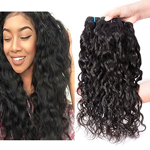 Brazilian Water Wave Virgin Hair Bundle Deals 100% Human Hair 3 Bundles Natural Black Color No Shedding No Tangle (16 18 20)