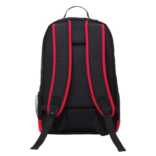 -. Feature : Built-in padded laptop compartment fits up to a 15 inch MacBook pro / Protruding front zippered pocket featuring a flat front zippered compartment / Side exterior mesh water bottle holder