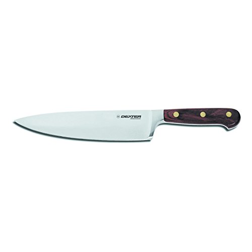 Forged chefs knife. Designed for executive chefs and front-of-the-house use in the finest restaurants, hotels and other institutions. Combines premium materials with Dexter's expert craftsmanship. Sanitary engineered rosewood handle, impregnated with polymers and resins, provides warmth, durability, balance and stain resistance. Stain-free, high-carbon steel blade is individually ground to the ultimate edge. Made in USA.
