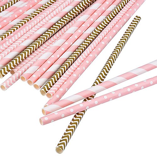 Various patterns: the straws include pink dot, pink stripe, gold wave, pink wave patterns, each pattern for 25 pieces, very beautiful, can meet your different needs