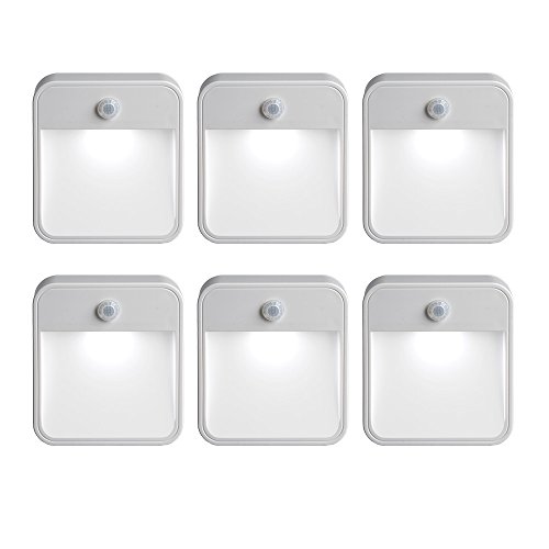 Mr Beams MB726 Stick Anywhere Battery-Powered Wireless Motion Sensor LED Night Light, White, Set of 6