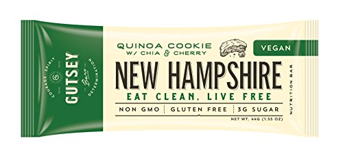 Gutsey New Hampshire Travel Bar, Quinoa Cookie, Gluten Free, Paleo, Vegan Pea Protein (12 Bars)