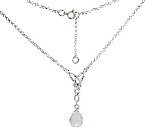 -. Title : Sterling Silver Celtic Tear Drop Necklace with Natural Moonstone, 16 inch long