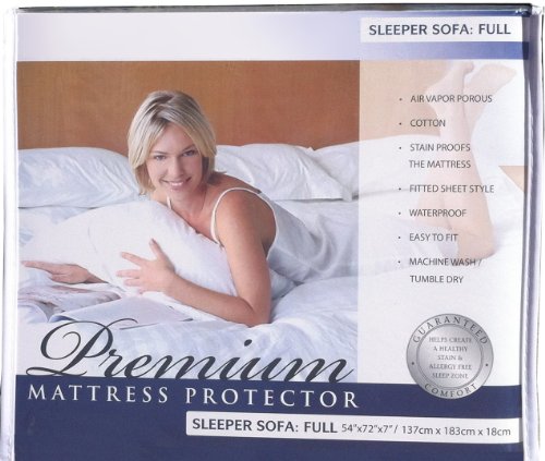 -. Brand : Sleeper Sofa Mattress Protector -. Feature : Protects mattresses from stains (accidental spills, perspiration, bodily fluids) / Available in common sofa mattress sizes fits 4-7 inch profile mattress / Made with super-soft cotton / A must for families with children and pets! Mattress protector goes on like a fitted sheet. / Made of soft cotton backed with a breathable polyurethane film allowing body to breathe -. Label : Gotcha Covered -. Manufacturer : Gotcha Covered -. ProductGroup : Home -. ProductTypeName : HOME_BED_AND_BATH -. Publisher : Gotcha Covered -. Studio : Gotcha Covered -. Title : Sleeper Sofa Mattress Protector Lo-Profile 4-7 inch Conventional Cotton w Waterproof Backing