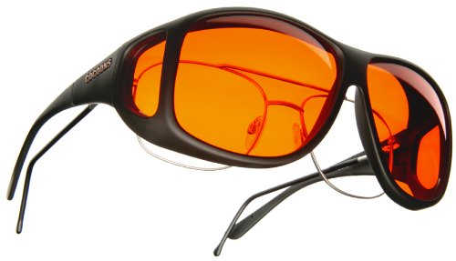 Designed to fit comfortably and securely over 99.5% of all prescription eyewear frames. Extra Large Fits over prescription frames measuring less than 5 1/2"w 2"h. Six sizes to choose from. 360° of Protection: It is important that a sunglass provides protection from all angles. Cocoons patented frame designs block damaging UV light and glare from all angles, completely isolating the eyes in a cocoon of filtered light. Each pair includes a custom designed protective neoprene case, large lens cloth and a limited lifetime frame warranty.Feature