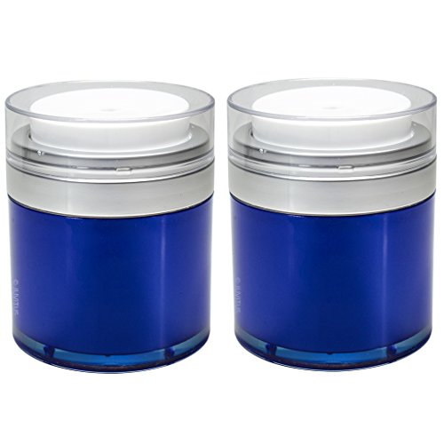Blue Airless Refillable Jar 1 oz / 30 ml (2 pack) keeps out bacteria and air changing oxidation from your skin care products - durable, leak proof, and shatterproof for home or travel