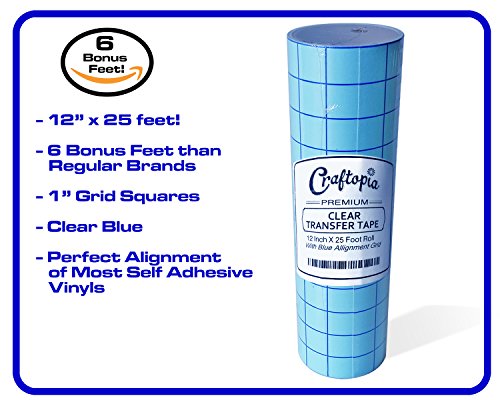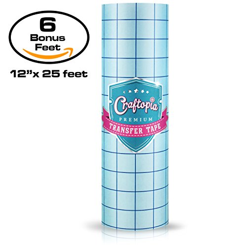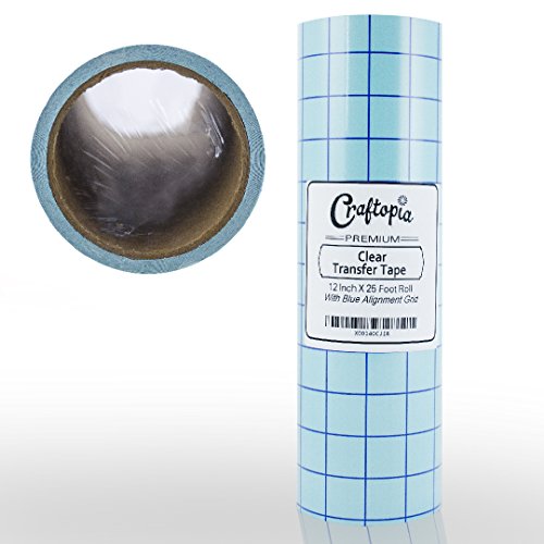 Craftopia 12 Inch x 25 Feet Clear Transfer Paper Tape Roll Self Adhesive Vinyl with Blue Alignment Grid for Signs Stickers (6 Extra Feet)