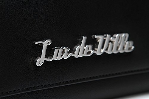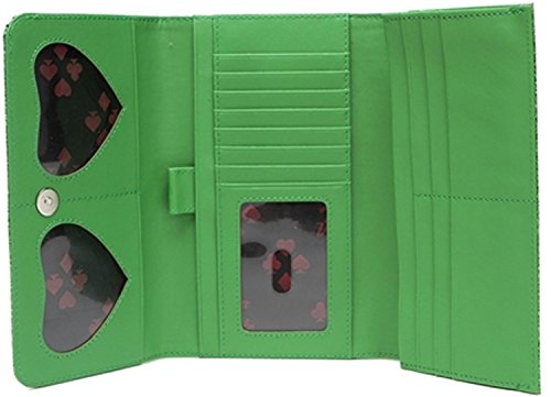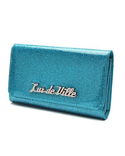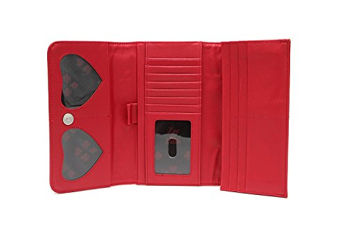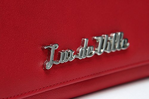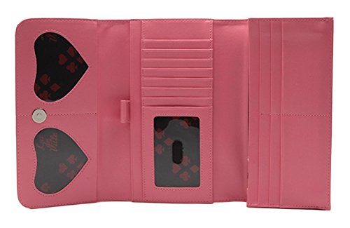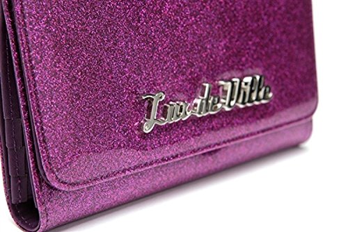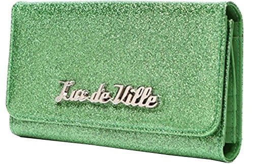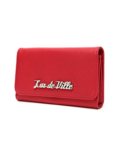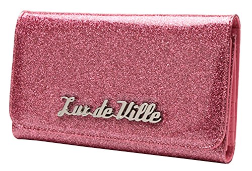 Binding : Apparel Product Description Lux de Ville's new signature wallet will compliment any of your Lux de Ville handbags. Functional yet fabulous!! Hooray! Inside you will find two heart shaped picture frames, two bill compartments, pen holder, zippered coin pouch and plenty of card and ID holders. Tri fold with magnetic clap. Measurements 7 1/2 inches long, 4 1/2 inches tall - closed, 12 inches tall - open and 1 inch wide 0
