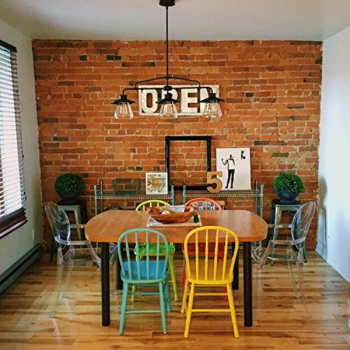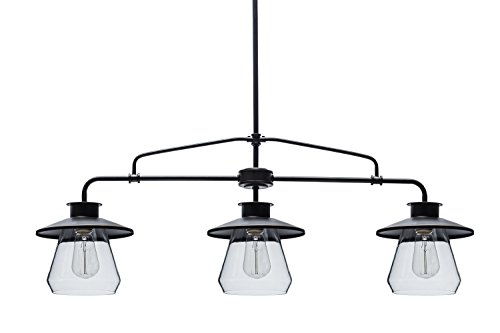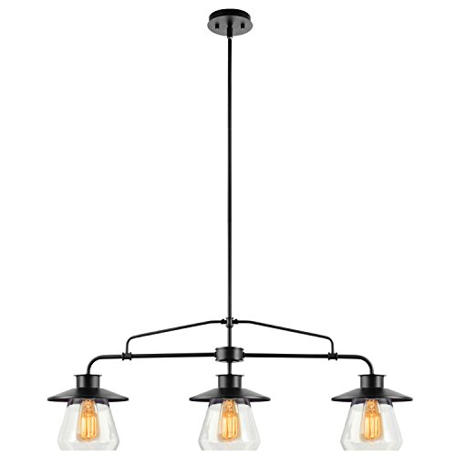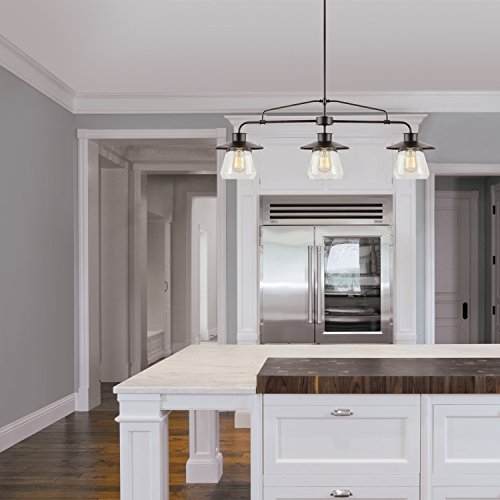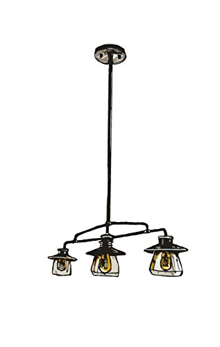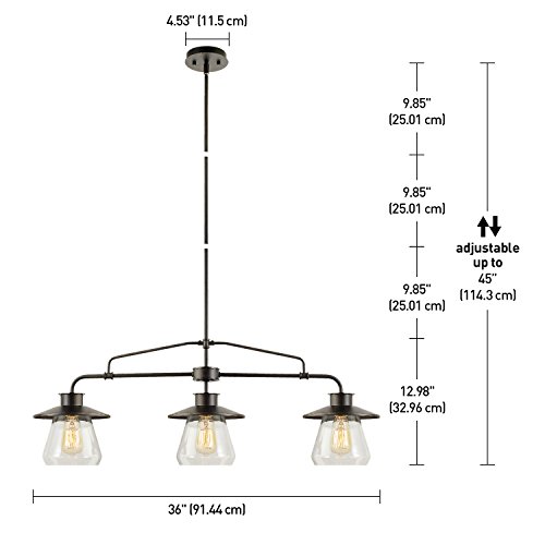 Fashioned after vintage inspired lighting Globe Electric’s 3-Light Vintage Pendant adds a rustic industrial feel to any room. Hanging from a metal rod that can be adjusted in three places you can customize this fixture to your desired look and lighting needs. Fully compatible with dimmable LED bulbs and dimmer switch the clear glass shades and exposed bulbs easily create lighting ambiance and different moods. Ideal for use in kitchens, restaurants, bars, and dining rooms. Includes all mounting hardware for quick and easy installation and requires three 60W E26 vintage inspired light bulbs (sold separately).Feature
