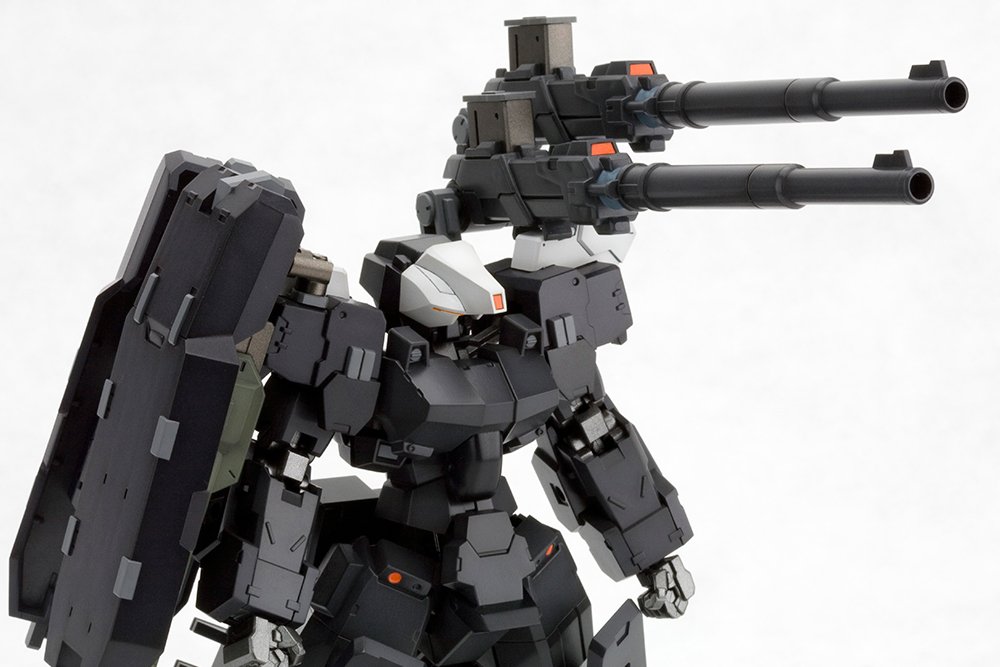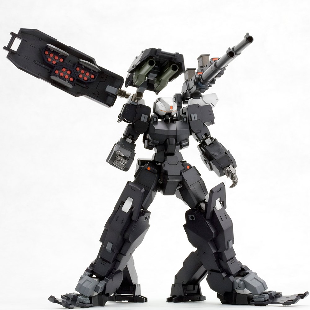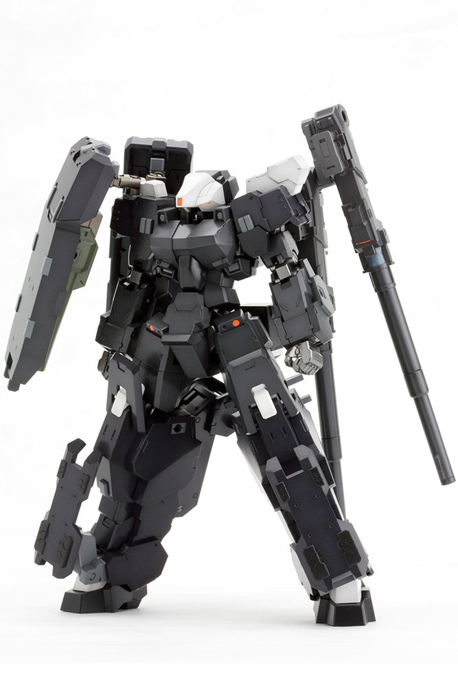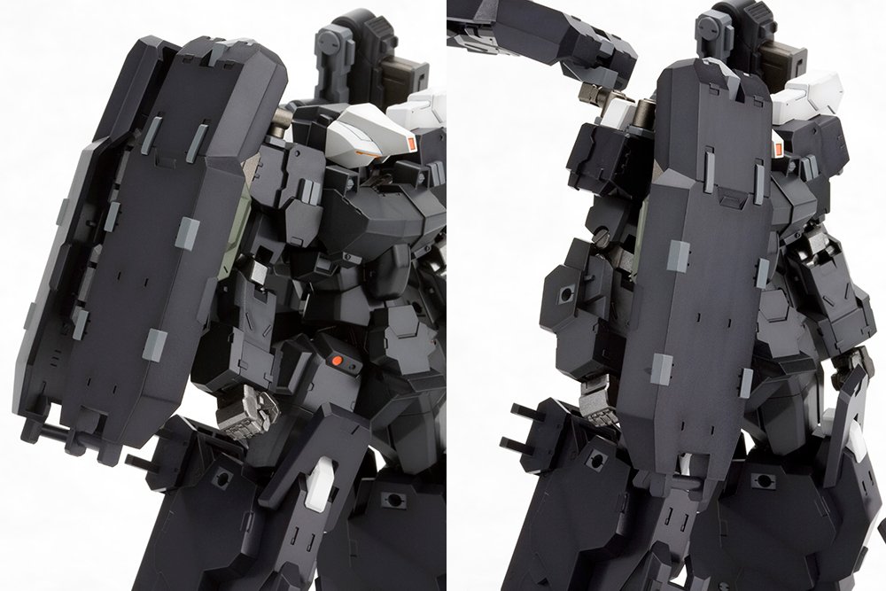 The large shield which was rearranged on the right shoulder is interior decorated with two types of weapons, which become new parts, and is flexibly movable by the newly designed 4 axis joint, and various situations can be reproduced from the defensive form to the shooting form.