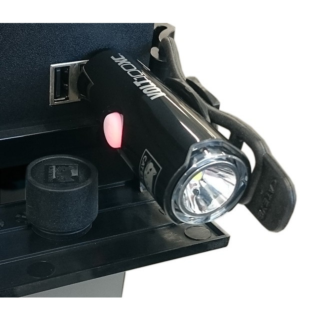 ・ラバーバンドで簡単取り付けが可能なコンパクトサイズのUSB充電式フロントライト