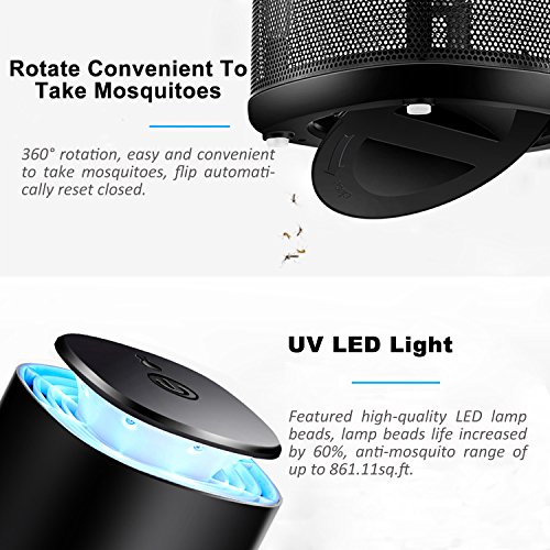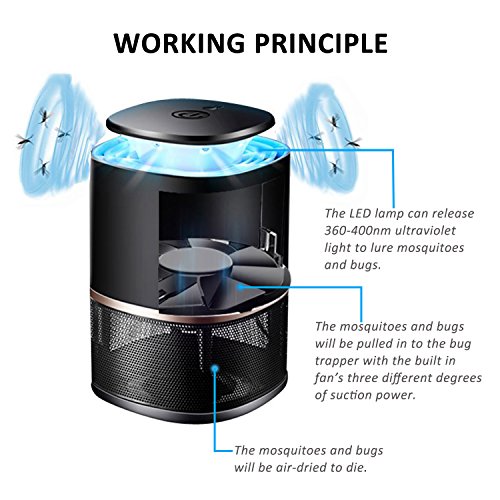 LED LIGHT INDUCTION AND 360 DEGREES SUCTION FAN: With LED lamp, can release 360-400nm ultraviolet light to lure mosquitoes. And the mosquitoes flying from any direction will be pulled in to the bug trapper with the built in fan’s suction power. Then they will be air-dried to die. There are three different degrees of suction to choose: efficient mode / normal mode / sleep mode.