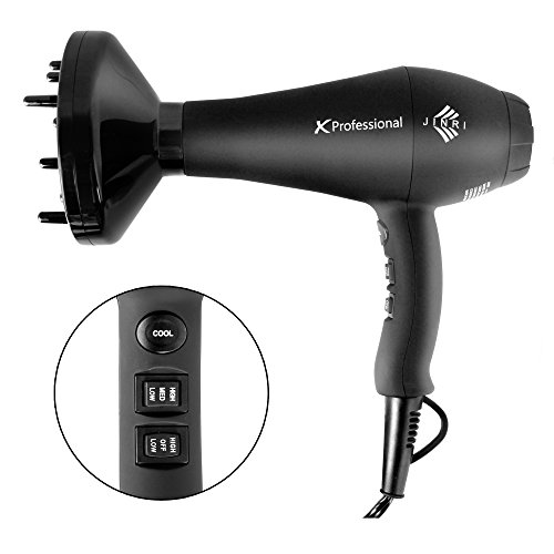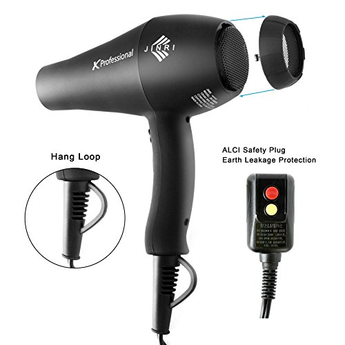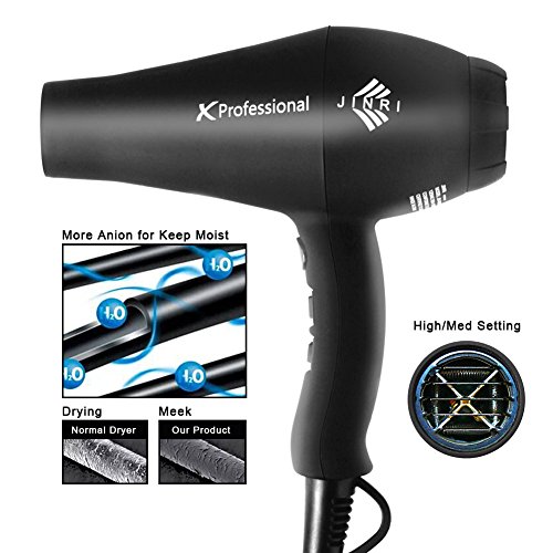 JINRI Professional Hair Dryer with 1875W Negative Ionic 2 Speed and 3 Heat Settings Cool Shot Button Hair Dryer ,Black color