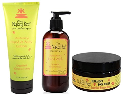 Naked Bee Grapefruit Blossom Honey 3 Piece Set, Includes 6.7oz Lotion, 8oz Hand Wash, and 8oz Body Butter