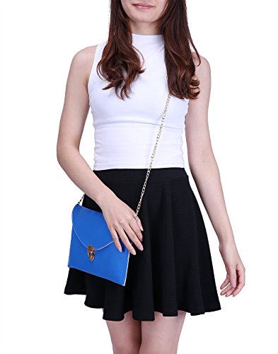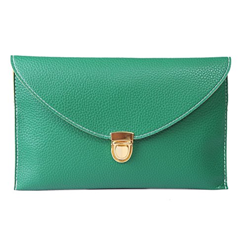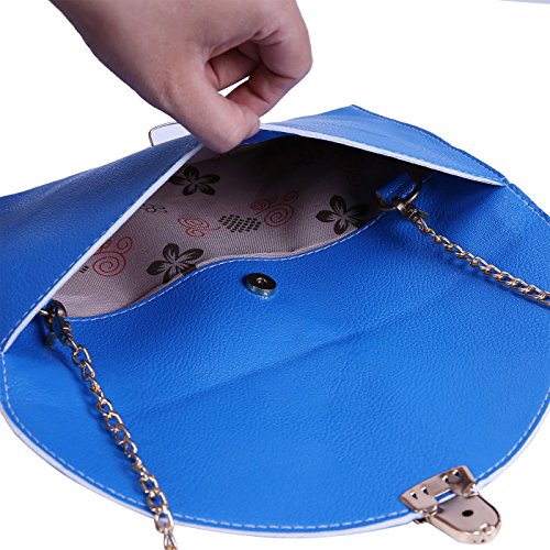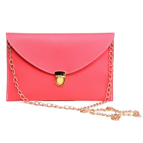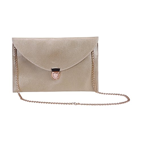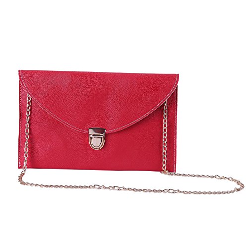 Your handbag is not just a place to store your stuff. Your handbag is a fashion accessory that speaks for you, so make sure your message comes through loud and clear. With this must-have synthetic leather clutch by your side, show the world that you have a style all your own. The flat design is compact and lightweight, while still having plenty of space in which to store your cell phone, wallet, cosmetics, and other important essentials. A one-of-a-kind golden metal chain lets the purse hang freely from your shoulder, while a matching golden buckle clasp keeps your belongings secure as you paint the town red.Feature