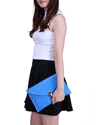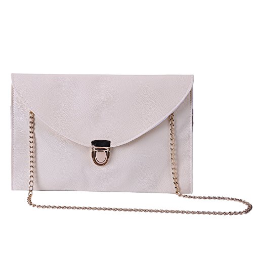 Premium synthetic leather envelope clutch-style drop-in chain handbag with woven inner lining