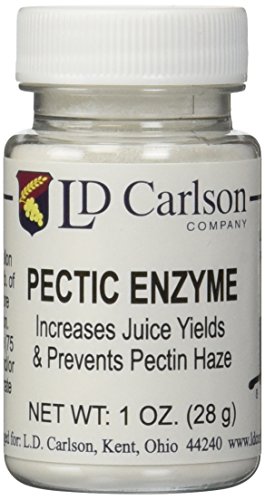 -. Binding : Misc. -. Brand : Home Brew Ohio -. EAN : 0888690063822 -. Feature : Pectic enzyme breaks down the pectin's in fruit, makes the crushing or pressing more efficient / reduces pectin's hazing effect in wine which leaves you with a brilliant, clear wine when fermented properly / Pectic Enzyme may also be added to red grape must to help extract tannin from the fruit skins. Do not add this enzyme with bentonite, as this will negate the effect. 1 oz package -. Label : Home Brew Stuff -. Manufacturer : Home Brew Stuff -. Model : 6382 -. MPN : 6382 -. NumberOfItems : 1 -. PackageQuantity : 1 -. PartNumber : 6382 -. ProductGroup : BISS -. ProductTypeName : HEALTH_PERSONAL_CARE -. Publisher : Home Brew Stuff -. Studio : Home Brew Stuff -. Title : Pectic Enzyme (powder) - 1 oz. -. UPC : 888690063822