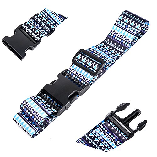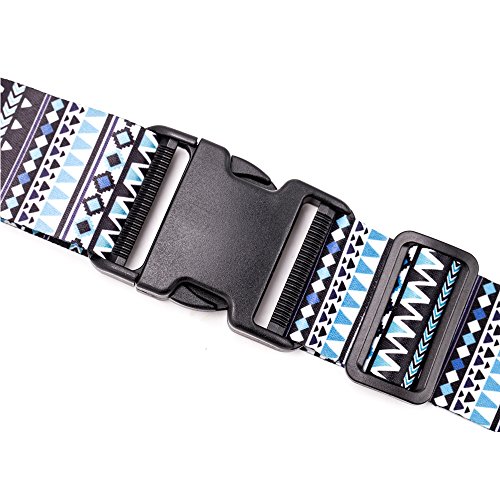 -- Terrific SINOKAL luggage straps : Lots of fun color and pattern choices to start with. They are a lighter weight and not bulky, they are a much higher quality and will fit a larger suitcase. You can Buy one strap to go vertically and one to go horizontally around your suitcase.You can choose them freely base on your like. If you usually travel light with a suitcase. Makes it so easy to find on a baggage carousel, too. You can thread the straps under handles to keep them in place and these adjusted and tightened easily. Again, you will be pleasantly surprised by the quality, texture and generous length of the straps.