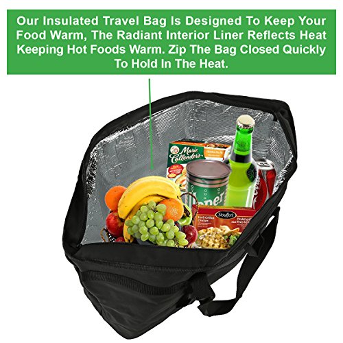 ✓ Our Insulated Travel Bag Is Designed To Keep Your Food Warm, The Radiant Interior Liner Reflects Heat Keeping Hot Foods Warm. Zip The Bag Closed Quickly To Hold In The Heat. The Shoulder Strap Slides Out To Allow Carrying The Tote Horizontally.