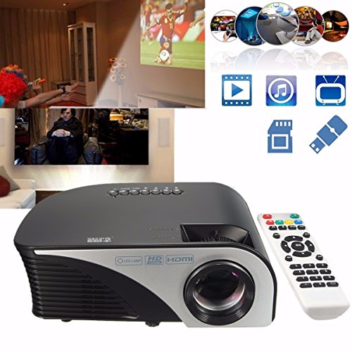 -. Feature : Portable design, easy to take and travel. System Support: Multi-media (Music, Picture, Video, TXT); Enjoying watching movie at home and outside for camping / Various Multimedia Ports: AV/VGA/SD/USB/HDMI slots make it possible to easily connect a desktop, notebook, tablet, DVD, WII, XBOX, MP5, digital camera to this projector. / A Great Experience For Home Theater Movie Nights & Game. For example, Wii game, like golf, tennis, fit etc, works with game consoles, Easy connection to a PC. / The professiona appearance design for ventilation has largely improved the stability and life time for the projector / Portable design.Small size and weight.With portable design,you can take it to any place.Especially for outdoor movies would be great.And we sest you to use external speaker to get perfect sound