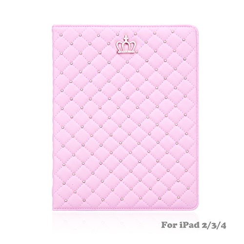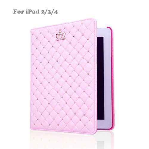 IDEGG Princess iPad 2 3 4 Case for Girls and Women, Fashion PU Leather Cover with Bling Crown, Just Fits iPad 2nd Generation (2011), 3rd Generation (2012) and 4th Generation (2013) (Pink)