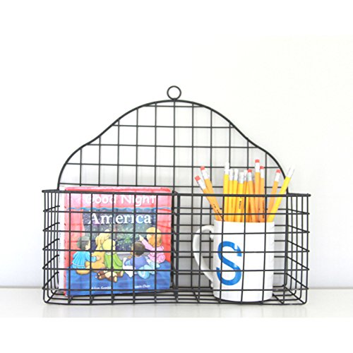 Tagway Home Black Metal Multi-functional Two Compartment Wire Storage Basket