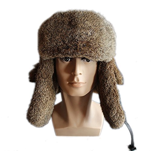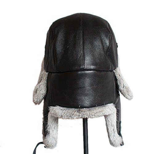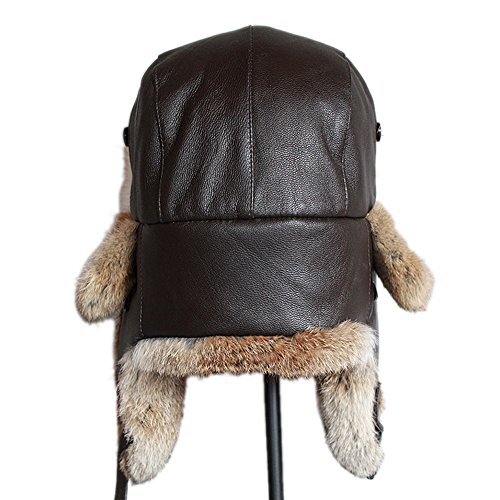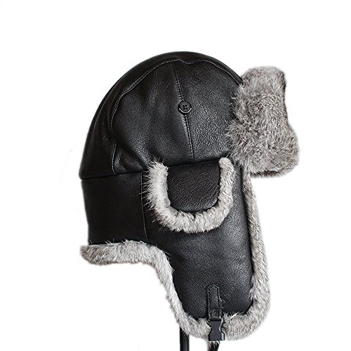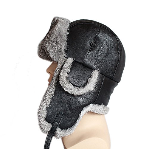 Winter Fur Trapper Leather Hat - Waterproof Natural Rabbit Fur Trim Trooper Hunting Hats FURTAL...