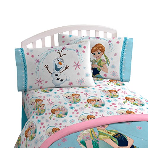 Transform any child's bedroom with a Disney frozen perfect day super soft microfiber twin sheet set. This Disney Princess bedding sheet set will make any child smile. Each 3 piece, super soft microfiber twin sheet set includes a fitted sheet, flat sheet and one standard reversible pillowcase. The bold colors and exciting design will enhance the existing decor of any kid's or toddler bedroom. Fitted sheet measures 39" x 75", flat sheet measures 66" x 96" with one 20" x 26" standard pillowcase. Decorative bedding features popular characters and icons from the movie. 100percent polyester. Easy care, machine wash cold, tumble dry low. ImportedFeature
