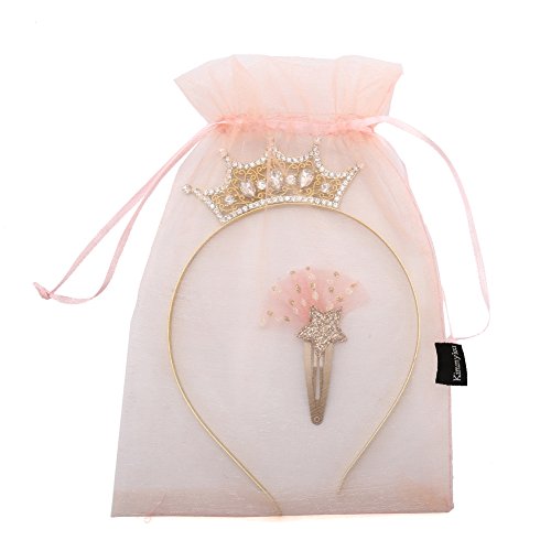KimmyKu Fancy Fairy Gold Glitter Star Princess Flower Girl Birthday Costume Rhinestone Crystal Gel Tiaras Crowns Headpiece Headbands Clip For Toddlers Kids Child Girls