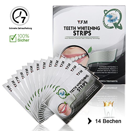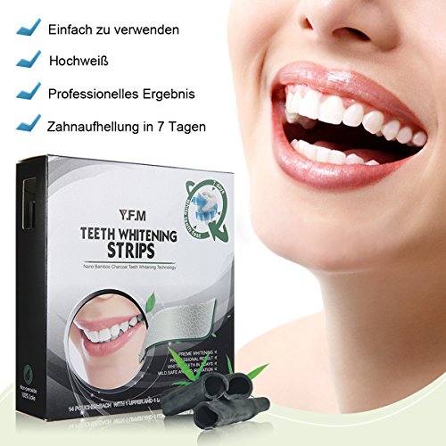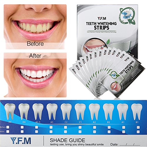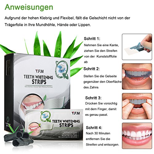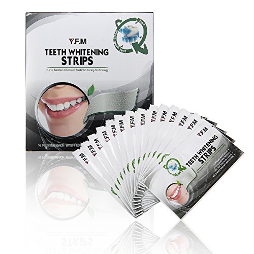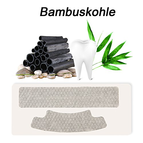 NATURAL INGREDIENTS - Well-selected natural active bamboo charcoal ingredients Nano-bamboo charcoal particles are covered with fine pores on their surfaces and can absorb the impurities on teeth. Integrated in the teeth whitening strip, it helps to better remove stains on tooth surface, reduce plaque, freshen breath, and brighten & strengthen teeth