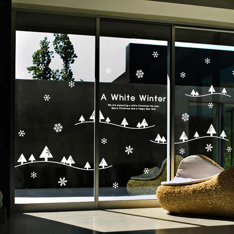 圣诞节店铺橱窗贴纸 玻璃贴画装饰布置用品门贴窗贴小松树