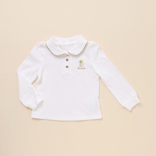 상품설명 깨끗한 느낌의 화이트 컬러의 카라 티셔츠 입니다. 기존에 나오던 카라 티셔츠보다 고급스러운 느낌을 주기 위해 골드 컬러의 삥줄을 들어간 디자인입니다. 골드 컬러의 단추, 골드 고양이 로고 자수로 고급스러운 프랜치캣의 느낌을 살려 코디하기 좋습니다. 여러가지 코디 하시기 좋은 소장가치 백프로의 아이템입니다