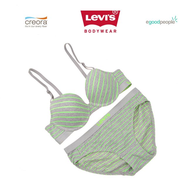 NEW 멜란지 그린 스트라이프 여성 브라팬티 세트
