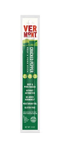 -. Title : Vermont Smoke & Cure Meat Sticks, Beef & Pork, Antibiotic Free, Gluten Free, Cracked Pepper, 1oz Stick, 24 Count
