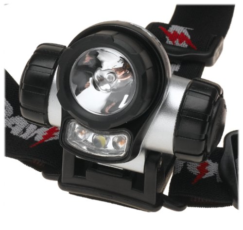 - Feature : This 3 function Rayovac headlight is a long lasting bright hands free source for light / This lightweight weatherproof headlight includes a 2 way adjustable head strap with pivoting angles / Two red led's in this Sportsman headlight gives improved night vision and one white led for close up use and a long range krypton for distance / This headlight has a battery life up to 200 hours when used on led setting / Beam brightness, 2900 peak beam candlepower