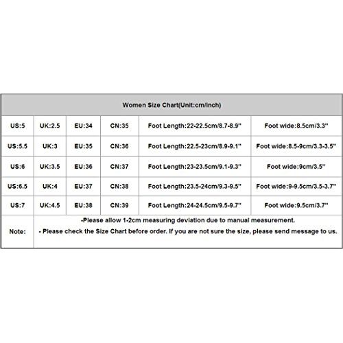 Women Size Chart(Unit:cm/inch) US:5 UK:2.5 EU:34 CN:35 Foot Length:22-22.5cm/8.7-8.9" Foot wide:8.5cm/3.3" US:5.5 UK:3 EU:35 CN:36 Foot Length:22.5-23cm/8.9-9.1" Foot wide:8.5-9cm/3.3-3.5" US:6 UK:3.5 EU:36 CN:37 Foot Length:23-23.5cm/9.1-9.3" Foot wide:9cm/3.5" US:6.5 UK:4 EU:37 CN:38 Foot Length:23.5-24cm/9.3-9.5" Foot wide:9-9.5cm/3.5-3.7" US:7 UK:4.5 EU:38 CN:39 Foot Length:24-24.5cm/9.5-9.7" Foot wide:9.5cm/3.7" 0
