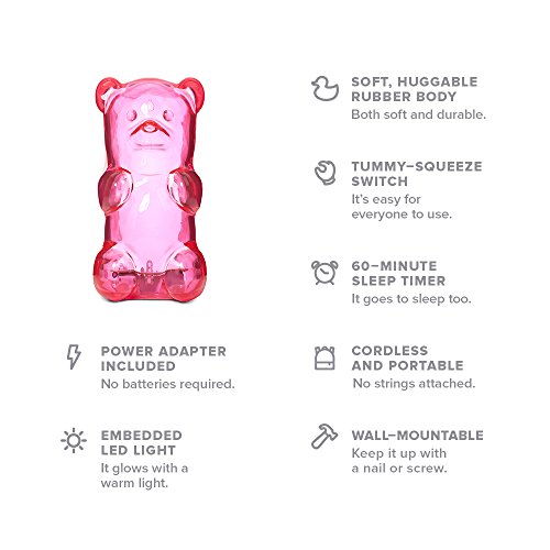 Gummygoods Squeezable Gummy Bear Night Light, Portable with 60 Minute Sleep Timer, Pink