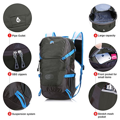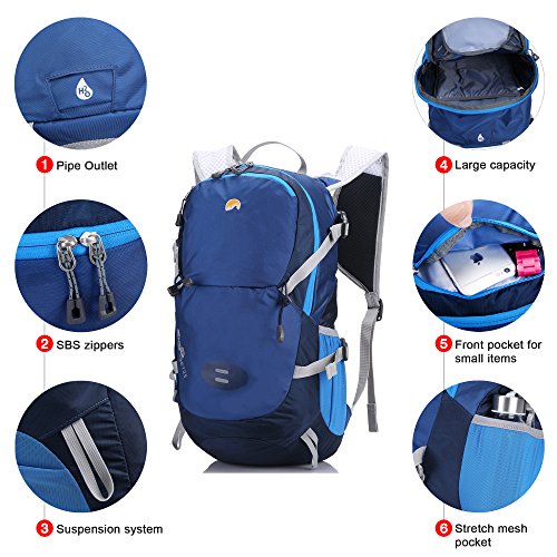 -. Binding : Misc. -. Brand : Paladineer -. Department : Unisex -. Feature : Quality Material & SBS zippers: Made of lightweight, water resistant and rip-stop nylon material, extending the lifespan of the backpack; Easy to clean and maintain; Metal SBS zippers with elastic and plastic pulls for function and decoration / Comfortable Straps & Breathable Panel: Ergonomically designed, 3D padded back panel with breathable mesh for ventilation and super comfort; Adjustable and contoured mesh shoulder straps for perfect fit and comfortable carry; Adjustable chest strap to share weight and increase stability; Compression straps to secure gear and provide extra storage for items / Large Compartment & Many Pockets: Large main compartment to meet your needs well; The front pocket to keep your small items secure; Stretch mesh pockets on the side to hold water bottle or wet towel; Clever pockets located on the shoulder straps to store your snack or change / Hydration System & Suspension System: A dedicated sleeve in the main compartment for your water bladder (This pack doesn't include a bladder); Hidden tube outlet to allow the drinking tube to go through the hydration compartment; The elastic cord to carry your alpenstock or ice axe with suspension system / Safety Assurance & Rain Cover: Survival whistle on the chest strap to help much in emergency; Front reflective stripes to enhance the visibility in low light condition and ensure your security; Detachable rain cover in the bottom pocket for quick access to keep the gear from storm -. Label : Paladineer -. Manufacturer : Paladineer -. ProductGroup : Sports -. ProductTypeName : SPORTING_GOODS -. Publisher : Paladineer -. Studio : Paladineer -. Title : Paladineer 25L Outdoor Sport Cycling Backpack Hiking Daypack for Climbing