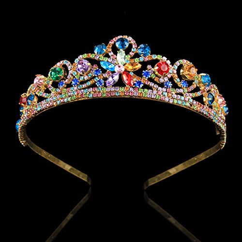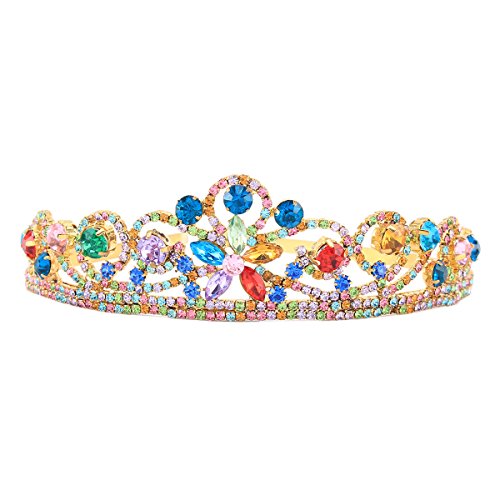 Santfe Women's Queen Princess Colorful Crystal Rhinestones Flowers Crown Headband Tiara Hair Costume Accessory (Style2)