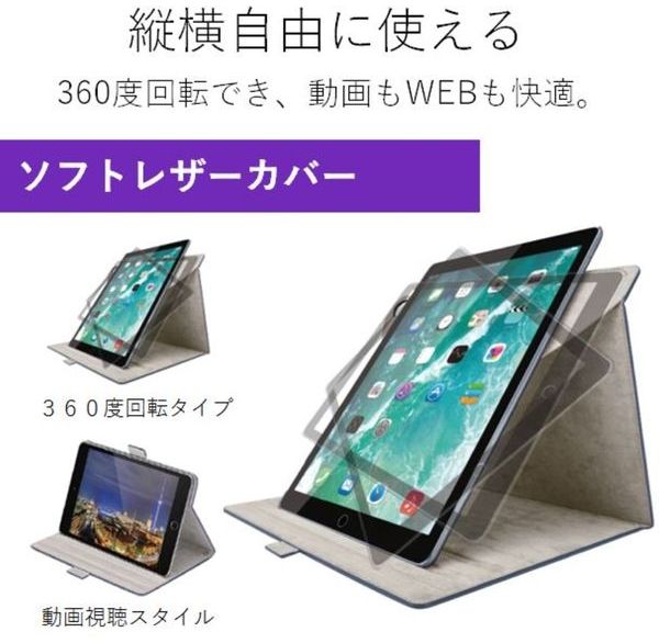 ●ケース部分が360度回転させることができるため、映像を見るときは横向きに、縦に長いWEBページを見るときは縦向きにスタンド設置できる10.5インチiPad Pro 2017年モデル用ソフトレザーカバーです。